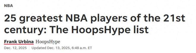 库里第5名!在新赛季开打25场比赛后,美媒《hoopshype》适时更新公布21世纪25大巨星名单,其中哈登12杜兰特4,科比屈居第二。